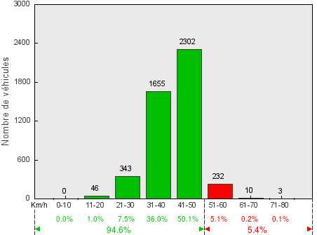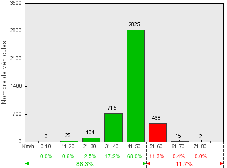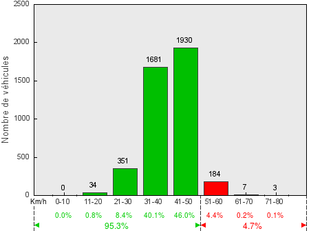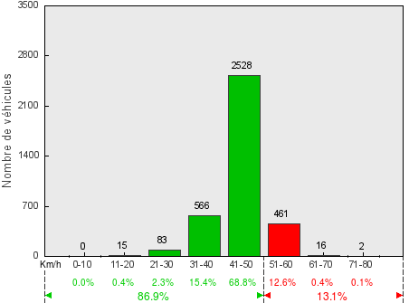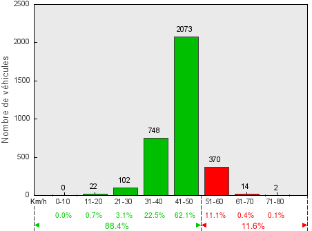 Trafic journalier moyen(véhicules dans les deux sens) - V50 = 40.1 km/h / V85 = 46.4 km/h