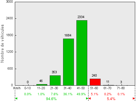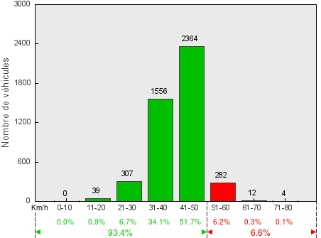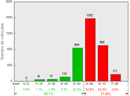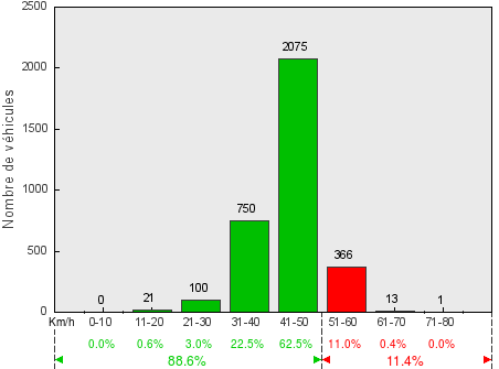 Trafic journalier moyen(véhicules dans les deux sens) - V50 = 41.3 km/h / V85 = 47.4 km/h
