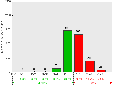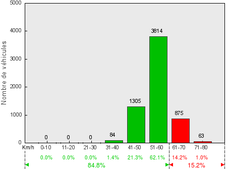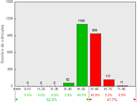 Trafic journalier moyen(véhicules dans les deux sens) - V50 = 51.6 km/h / V85 = 60.0 km/h