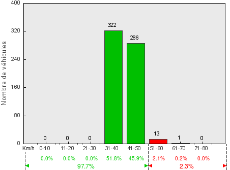 Trafic journalier moyen(véhicules dans les deux sens) - V50 = 42.8 km/h / V85 = 50.6 km/h